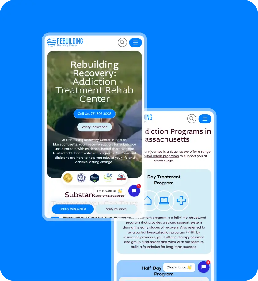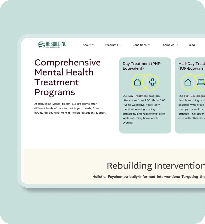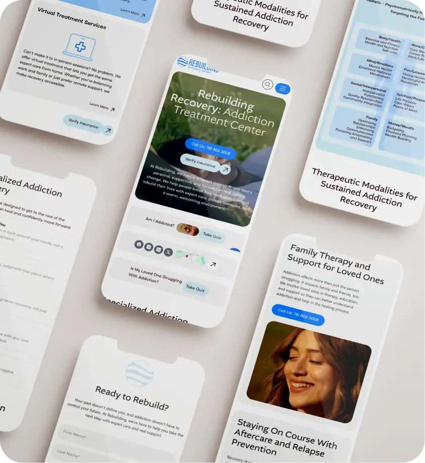 Rebuilding operates two centers: Rebuilding Recovery Center and Rebuilding Mental Health. They needed to feel clearly connected yet confidently distinct, and a user experience that expressed their warmth, safety, or professionalism.ку