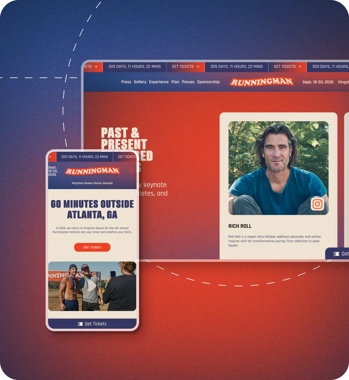 Poirier Agency transformed Runningman Festival’s digital presence into a high-energy experience that reflects the thrill of race day.